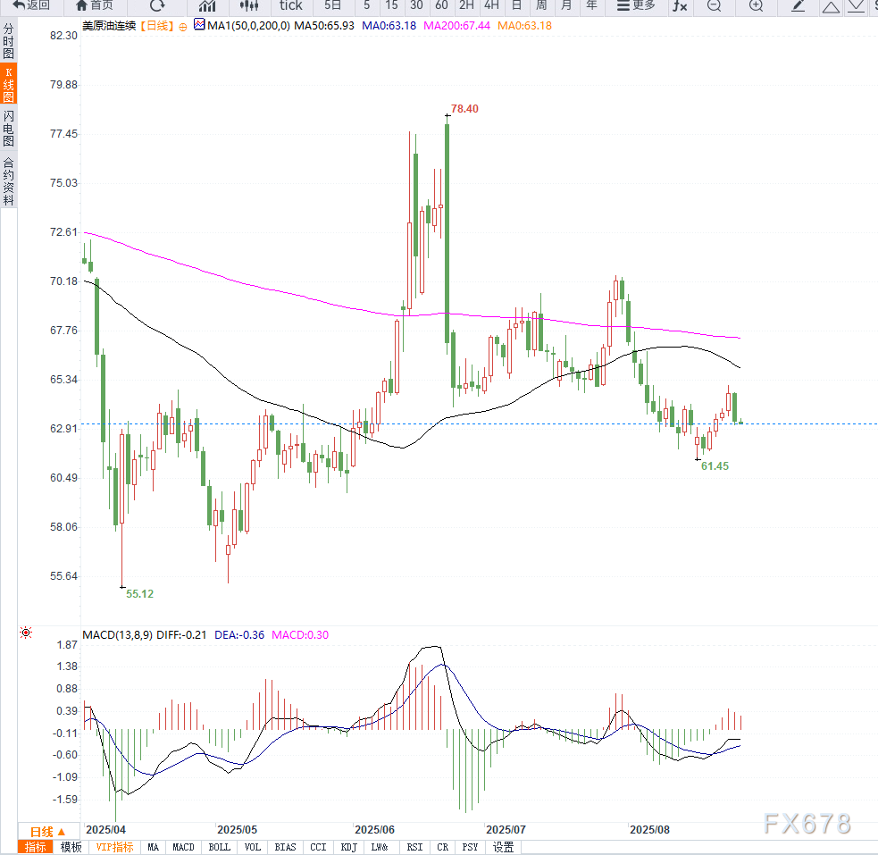 美国总统特朗普表示,此举是回应印度增加购买俄罗斯折扣原油的行为。俄罗斯在受到西方制裁后,以低价向外出售原油,而印度作为全球第三大原油消费国,成为主要买家。   ANZ高级大宗商品策略师Daniel Hynes指出:“市场情绪依旧紧张,投资者担忧美国对印度的额外关税可能影响其原油进口和炼油格局。”   在美国宣布关税措施后,印度炼油厂最初一度减少了俄罗斯原油采购。然而,印度石油公司(Indian Oil)与巴拉特石油公司(Bharat Petroleum)近期又恢复了9月至10月的采购计划。   印度石油公司更是明确表示,是否继续采购俄罗斯原油将取决于价格经济性。   ING大宗商品策略主管Warren Patterson评论称:“美国的二次关税措施并未真正阻止印度继续进口俄罗斯原油。未来市场的焦点在于俄印之间的原油流向是否会出现明显变化。”   除关税政策外,俄乌冲突也在影响全球能源供需。近期乌克兰袭击破坏了部分俄罗斯炼油厂,使得这些设施被迫削减加工能力,不得不将更多原油出口至国际市场。   据消息人士透露,俄罗斯已将8月西部港口的原油出口计划上调20万桶/日,以弥补国内炼化缺口。   从日线走势来看,WTI原油在63美元附近形成阶段性支撑,但上方65美元至66美元区间存在明显压力。技术指标显示,短期均线趋于走平,MACD动能柱缩窄,RSI维持在中性区域,显示市场缺乏明确方向。   若价格有效突破66美元,则有望进一步上探68美元一线;但若跌破63美元支撑,则可能重新测试60美元关口。整体格局表现为区间震荡,等待基本面消息的进一步指引。